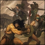 Pour Conan, il s’agit cette fois-ci d’une création originale. Comme pour le jeu de plateau, c'est la simplicité qui a guidé la création des règles, tout en conservant l'esprit sauvage de la Sword & Sorcery et des ouvrages originels. Le jeu se veut accessible et dynamique, laissant une place aux actions d'éclat et à l'aventure. Cet objectif a été atteint en moins de 200 pages fort lisibles et abondamment illustrées, auxquelles s'ajoutent trois récits introductifs à jouer, permettant de se familiariser avec la plupart des mécanismes. Ce qui est toujours une bonne idée…