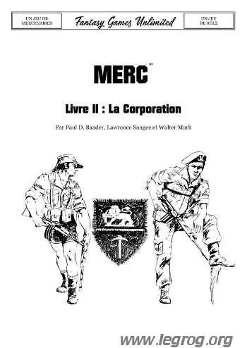 Le texte se poursuit avec un exemple de la discussion entre joueurs et Corporation constituant une partie (2 pages) puis un scénario d'introduction se déroulant en Rhodésie en 1975 pour ramener l'ordre dans le pays, avec l'exposition du cadre, deux pages de plans et les descriptions d'une équipe de mercenaires.