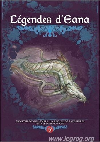 Les Légendes d’Eana sont des recueils d’aventures pour Dragons/Fateforge réunissant 5 scénarios autonomes autour d’une thématique commune. Ces scénarios ne nécessitent que les livres Aventuriers et Grimoire pour être joués — les périls, créatures, règles optionnelles et objets magiques étant fournis en annexe. Aboleths d’Eaux Noires, troisième livret de ce format, met en scène la lutte contre la menace insidieuse des aberrations d’Eaux Noires.