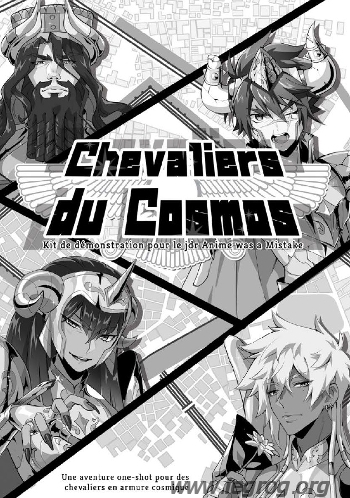 Chevaliers du Cosmos est à la fois un kit de démonstration pour le jdr Anime Was a Mistake et une adaptation aux Chevaliers du Zodiaques (mais aussi aux dérivés comme Shurato ou Samouraï de l’éternel). Les personnages vont donc porter des armures cosmiques et lancer leurs attaques en criant leur nom.