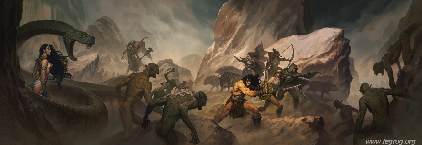Companion (Le Compagnon, 28 pages) est le fascicule accompagnant l’écran et est destiné au Maître de Jeu. Après une première page faisant office de couverture, il continue sur une page de crédits. Puis, Welcome to the Hyborian Âge! (Bienvenue à l’Âge hyborien, 25 pages) continue sur la présentation du livret avant de donner des descriptifs et des tables de tirage aléatoire pour assister le MJ dans la création de ses aventures. Suivent ainsi des contrées et lieux (6 pages), les intrigues et procédés littéraires (4 pages), les amis et alliés (2 pages), les antagonistes et adversaires (4 pages), le butin et trésors (5 pages). Enfin la dernière partie (sur 3 pages) décortique la phase de création d’une aventure en 9 étapes clés et permet donne différents conseils en lien avec les tables des précédentes parties du livret.