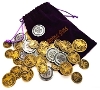 Pochette plastique contenant 1 bourse en tissus et 50 tokens métalliques.